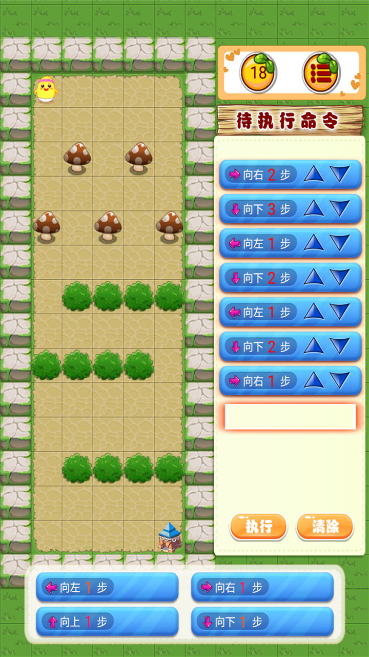 趣味儿童编程让孩子们在学习编程的过程中,逐步建立起时间、顺序、空间、因果等一系列重要的逻辑概念。通过直观的操作界面,孩子们可以轻松发出各种编程指令,这种互动式的学习方式能显著提高孩子的学习兴趣和应用能力。编程的严谨性决定了任何小的错误都将导致程序无法正常运行,因此孩子们在编写程序的过程中需要不断尝试、调试和修正,这种反复实践的过程无形中培养了孩子的耐心和专注力。目前版本主要支持方向控制的编程内容,在后续版本更新中将会增加更多丰富的编程行为,如循环结构、条件判断等进阶功能,让孩子的编程学习之路更加完整和系统化。