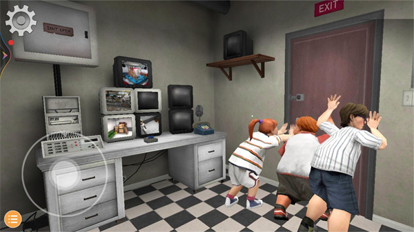这款游戏巧妙地将恐怖元素与卡通画风相结合,创造出独特的视觉体验。玩家可以灵活运用场景中的各种物品来设置陷阱或障碍,比如用家具堵住通道,或是利用冰淇淋机制造滑倒区域来延缓怪人的追击。每个房间都经过精心设计,提供了多种互动可能性。