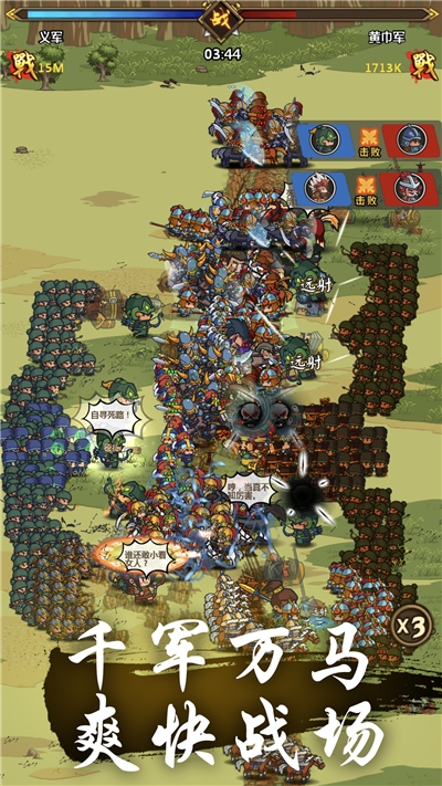 游戏以幽默诙谐的方式重新演绎三国故事,堪称手机上的"全面战争"。无论是喜欢深度策略的老玩家,还是追求爽快战斗的新手,都能在这里找到属于自己的乐趣。独特的放置玩法让玩家即使离线也能获得收益,真正做到轻松游戏不肝不氪。