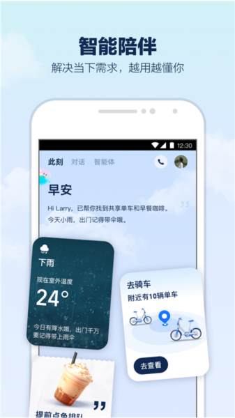 这款应用最大的特点在于其强大的场景感知能力和个性化服务推荐。系统会通过学习用户的使用习惯,结合时间、地点等上下文信息,智能推荐最适合的服务方案。比如早上通勤时会主动提醒公交到站时间,午休时段推荐附近优惠餐厅,晚上回家前建议最佳打车路线,真正做到"想你所想,急你所需"。