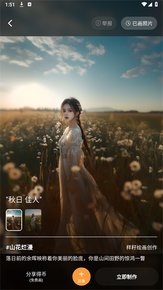 可制作自己看书、散步、吃饭、听歌等日常照片,亲近日常,更显真实。AI技术能够完美融入生活场景,让每张照片都充满生活气息,记录美好瞬间。