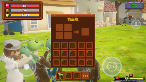 打开面板可以将两个豌豆射手放置到合成台的位置,这样就可以合成获得双发豌豆射手了,拖动到装备栏可以体验;合成系统操作简单直观,玩家可以轻松尝试各种组合,发现意想不到的武器效果。