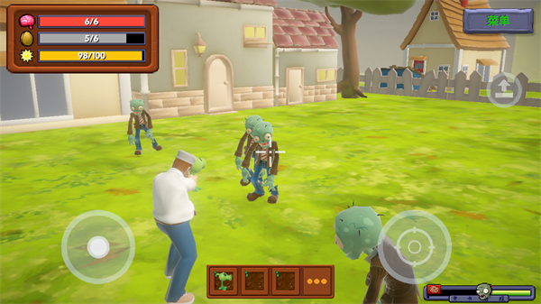 卡通风格的游戏场景,在庄园中与更多的僵尸进行,全新制作的3D画面风格体验,轻松和更多的敌人战斗。游戏采用明亮鲜艳的色彩搭配,角色造型夸张有趣,整体画面充满活力,让玩家在紧张刺激的战斗中也能感受到轻松愉快的氛围。