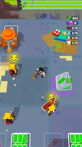 点击第一关卡关卡进行游戏,游戏里有着丰富多样的道具系统。从基础的近战武器到高级的爆炸装置,每种道具都能带来不同的战术体验。玩家需要根据战场形势合理搭配使用,才能有效抵御僵尸的进攻。