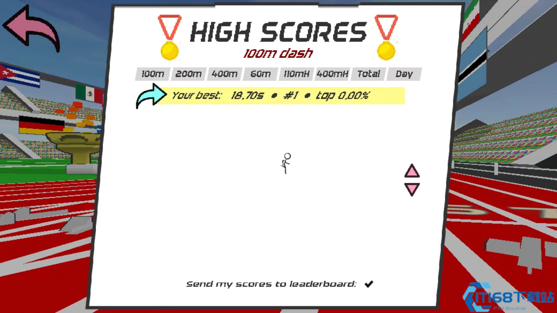 进入速度之星后,玩家首先可以自定义个人资料,包括选择代表国家的国旗和设置个性化昵称,让你的角色更具辨识度。游戏提供了丰富的赛事选择,涵盖100米、200米、400米短跑以及110米跨栏、400米跨栏等经典项目。以100米短跑为例,比赛开始前系统会给出明确提示,玩家只需点击屏幕即可控制运动员起跑。在比赛过程中,右上角会实时显示当前跑动的距离和用时,帮助玩家掌握比赛节奏。值得注意的是,点击屏幕的频率直接影响运动员的奔跑速度,因此快速点击是取胜的关键。冲过终点线后,系统会显示最终成绩,玩家还可以在游戏主界面查看历史记录,追踪自己的进步轨迹。